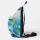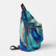 This abstract ocean artwork sling bag captures the fluidity and movement of water, with rich tones of cobalt blue, teal blue, and green.