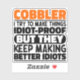 Funny Cobbler Sayings "Cobbler I Try To Make Things Idiot Proof But They Keep Making Better Idiots". Grab this Funny Cobbler design as a funny gifts for an awesome mom, dad or friend.