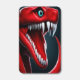 Menacing cobra snake with vibrant red scales and blue eyes .showcasing its terrifyingly large fangs and a venomous glare.artificial intelligence