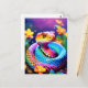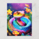Cobra snake with vibrant turquoise pink and yellow postcard
