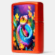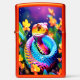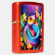 Cobra snake with vibrant turquoise pink and yellow zippo lighter