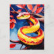 Menacing cobra snake with vibrant red and yellow scales in a tree showcasing its terrifyingly large fangs and a venomous glare.artificial intelligence art