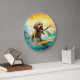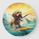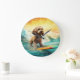 Immerse yourself in the playful world of canine adventure with this captivating painting. A spirited dog takes to the waves, skillfully riding the surf on a sun-kissed beach. The vibrant artwork beautifully captures the essence of beachside excitement as the dog fearlessly rides the waves, embodying the spirit of fun and freedom. With a harmonious blend of colors and dynamic brushstrokes, this piece brings the joy of surfing and the beach right into your space, making it a delightful addition to any art collection