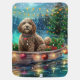 Set sail into the magic of the holiday season with this beautifully detailed illustration, showcasing a proud dog sitting in a festively decorated boat, gliding across a serene Christmas lake. The twinkling lights from nearby pine trees reflect off the water, casting a warm, festive glow that enhances the cozy ambiance. Ornaments dangle from the boat's sides, while glowing lanterns light the way, creating a scene that captures the true essence of Christmas warmth and joy. This nostalgic artwork brings a touch of holiday magic to any space, perfect for those who cherish the spirit of the season.