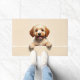 The soft cream beige background adds a warm and cozy touch, perfect for welcoming entryways. Designed with extra space at the top and bottom, it allows easy personalization with names, welcome messages, or custom text—making it ideal for unique dog-themed doormats and thoughtful gifts.