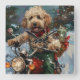 Cockapoo Dog Riding Motorcycle Christmas Square Wall Clock