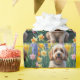 A cheerful dog sits peacefully on lush green grass, surrounded by colorful spring blooms under a soft blue sky. This digital oil painting captures a serene moment with expressive brushstrokes, warm colors, and a sense of gentle joy.