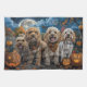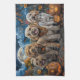 Unleash the spooky spirit with this eerie Halloween design featuring a pack of dogs under a dark, moonlit sky, surrounded by flying bats and glowing pumpkins. Perfect for those who love a touch of frightful fun with their furry friends!