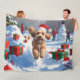Cockapoo Running in Snow with Christmas Hat Fleece Blanket