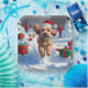 A fluffy Cockapoo runs happily through the snowy winter scene, wearing a festive red Christmas hat. This cheerful design highlights the breed’s curly coat, affectionate nature, and playful personality while capturing the warmth and joy of the holiday season. A delightful winter moment full of festive charm.