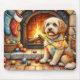 Cockapoo Sitting by Fireplace with Christmas Light Mouse Pad