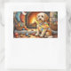 Cockapoo Sitting by Fireplace with Christmas Light Rectangular Sticker