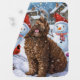 This festive design captures the joyful spirit of the holiday season, featuring an adorable pup wearing a Santa hat. The dog is nestled in a winter wonderland, complete with a snowman, a decorated Christmas tree, and beautifully wrapped presents. Snowflakes gently fall, adding a magical touch to the scene, while the vibrant colors of the holiday decorations create a warm and cheerful atmosphere.