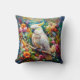 Cockatoo square throw pillow featuring an oil painting of a cockatoo surrounded by colorful flowers. This vibrant and detailed design adds a touch of artistic elegance and natural beauty, providing stylish accent to your room. Perfect for art lovers and nature enthusiasts.