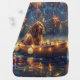 Set sail into the magic of the holiday season with this beautifully detailed illustration, showcasing a proud dog sitting in a festively decorated boat, gliding across a serene Christmas lake. The twinkling lights from nearby pine trees reflect off the water, casting a warm, festive glow that enhances the cozy ambiance. Ornaments dangle from the boat's sides, while glowing lanterns light the way, creating a scene that captures the true essence of Christmas warmth and joy. This nostalgic artwork brings a touch of holiday magic to any space, perfect for those who cherish the spirit of the season.