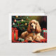 Golden Cocker Spaniel enjoys a peaceful holiday at home by the decorated Christmas tree.
