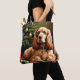 Golden Cocker Spaniel enjoys a peaceful holiday at home by the decorated Christmas tree.