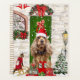 Cocker Spaniel Dog sitting outside decorated home with Christmas wreath, Christmas tree is a perfect Christmas gift idea for dog lovers.