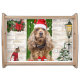 Cocker Spaniel Dog sitting outside decorated home with Christmas wreath, Christmas tree is a perfect Christmas gift idea for dog lovers.