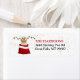 These Holiday return address labels have an image of an adorable buff colored American Cocker Spaniel dog in a red and white Christmas gift bag. Behind the dog is a string of colorful Holiday lights. Your custom text is in red and black at the right. A subtle gold confetti overlay gives interest to the background.