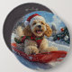 Cocker Spaniel Dog in Sledge Let it Snow Christmas Button