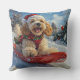 Cocker Spaniel Dog in Sledge Let it Snow Christmas Throw Pillow