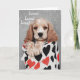 Cocker Spaniel dog Valentine's card. Cuddly canine set against a contemporary background in red, black and white. No flowers, just hearts and bags of cuteness.
