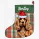 Cocker Spaniel Green and Red Plaid with Dog's Name Large Christmas Stocking