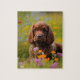 This puzzle features a cute cocker spaniel in a field of wildflowers.
