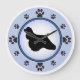 Cocker Spaniel owners and dog lovers will enjoy this fun modern design featuring a cocker spaniel silhouette and paw prints representing the numbers on the clock face, with a background of blue and a darker blue ring.