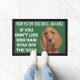 Custom dog doormat with a funny quote. "If you don't like dog hair, stay off the sofa." It has a non-slip rubber that won't crack or buckle, resists fading, mold, and mildew and can be easily cleaned with a hose. Be creative - click on CUSTOMIZE to add/remove/change text, change the picture, resize the picture, change colors, background or anything else the customization tool will allow!