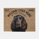 This welcome mat can be personalized with your dog’s name, the slogan can also be changed or you could use a picture of your own dog (make sure it's transparent). Text reads: William Lives Here…. All treats welcome.