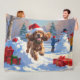 Cocker Spaniel Running in Snow with Christmas Hat Fleece Blanket