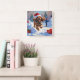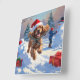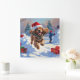 Cocker Spaniel Running in Snow with Christmas Hat Square Wall Clock