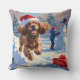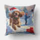 Cocker Spaniel Running in Snow with Christmas Hat Throw Pillow