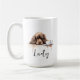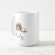 A morning coffee mug with a brown cocker spaniel with custom name in script style. "May your Coffe be stronger than your dog's Attitude" is written on the back. Perfect gift for dog owners that have a dog with an attitude and also love coffee.