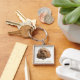 I have given this keychain as a gift to several different people now but changed out the image to personalize it. My friend sent me a photo of the keychain with sweet Bella. It rests next to her leash. Small, understated, and packed with a whole lotta heart. Printing quality looked great. Cropped perfectly. Overall I am very satisfied. Thank you Zazzle!