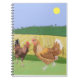 This colourful notebook will bring the countryside into your life. The design consists of a rooster and hen I spotted in a meadow in France. The rooster was running ardently towards the chicken, who was strutting about in the field.