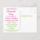 A cute postcard invitation that you can personalize and send out for a bachelorette party. The pink and green colors and font of the text can be changed to fit your preference.