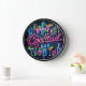 Fun and modern this neon sign themed wall clock makes a great gift. Add a name to personalize. In this collection of neon light styled wall clocks are clocks for man cave (bar, happy, hour, beer and cocktail themes), coffee and cafe themes for the kitchen or workplace, car and garage themed for mechanics, kids clocks for boy or girls bedroom with dance music or gamer themes. Lots to choose from. Browse the attached collection to view them all.