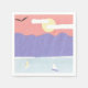 These Cocktail Napkins are designed with purple mountains and a blue ocean under an orange sunset sky.