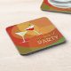 Custom cork coasters set for a cocktail party, pubs, bars or clubs with vector illustration of two cocktail glasses and custom text on colorful background. You can personalize these party coasters with your own text!