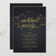 Modern and sophisticated cocktail party invitation in black and gold with elegant typography.