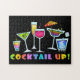 COCKTAIL UP! A bar full of the various cocktail glasses filled with a party full of drinks in a rainbow of colors in a whimsical and colorful style. 3 Variations of the design give you a multitude different gift choices.