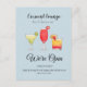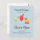 Tell your customers that you are open again post Covid-19 by sending this cool postcard with an illustration of mixed drinks cocktail watercolor illustration on aqua background. Perfect for bar, pub or restaurant.