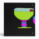 Cocktail recipe organizer binder. Black vinyl with drawings of three colorful mixed drinks covering the entire folder.