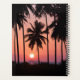 This photo features a silhouette of coconut palm trees at sunset on ko samui, thailand.