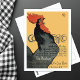 A postcard with a vintage French Art Nouveau illustration from Cocorico Magazine (1899) by Théophile Alexandre Steinlen (1859-1923). It depicts a black rooster with a red comb on a yellow background. Steinlen created over 400 Art Nouveau illustrations, many of which featured cats.