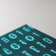 A cascade of ones and zeros pulses as if hiding the secrets of the digital universe. The artwork invites reflection on the invisible language that governs the modern world.