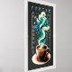 Fuel your digital creativity with this vibrant "Coding Coffee" art print. The design features a classic coffee cup releasing whimsical, swirling steam that blends seamlessly with falling binary code digits, reminiscent of a digital matrix. Boldly crowned with the word "CODING" in teal, this artwork perfectly captures the symbiotic relationship between caffeine and code. Set against a dark background, it creates a striking modern look perfect for a programmer's home office, a tech startup workspace, or a computer science student's dorm room.